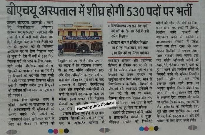 BHU Nursing Officer Vacancy 2026 – Apply Online for 300 Posts:- The Banaras Hindu University (BHU), Varanasi is expect to release the official notification for BHU Nursing Officer Recruitment 2026 for around 300 Nursing Officer vacancies.