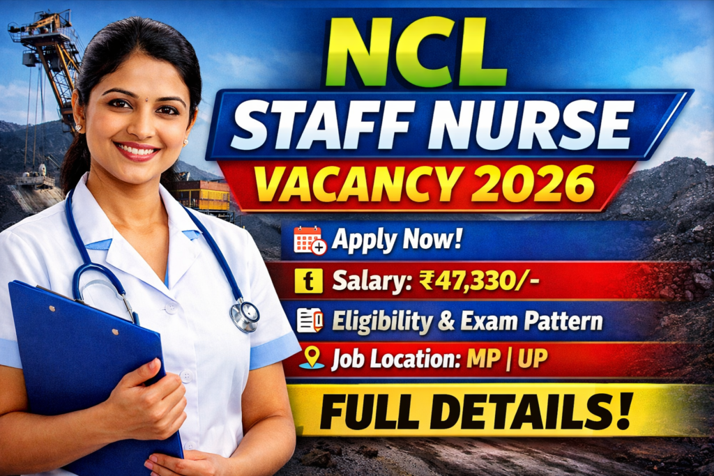 NCL Staff Nurse Vacancy 2026 – The NCL Staff Nurse Vacancy 2026 is one of the most awaited government job opportunities for nursing aspirants across India. Northern Coalfields Limited (NCL), a subsidiary of Coal India Limited, has officially released a comprehensive recruitment notification inviting online applications for various posts including Staff Nurse (Trainee), Pharmacist, Technician, and other paramedical staff. This recruitment drive aims to strengthen the healthcare infrastructure across NCL hospitals and dispensaries located in Singrauli (Madhya Pradesh) and Sonbhadra (Uttar Pradesh).