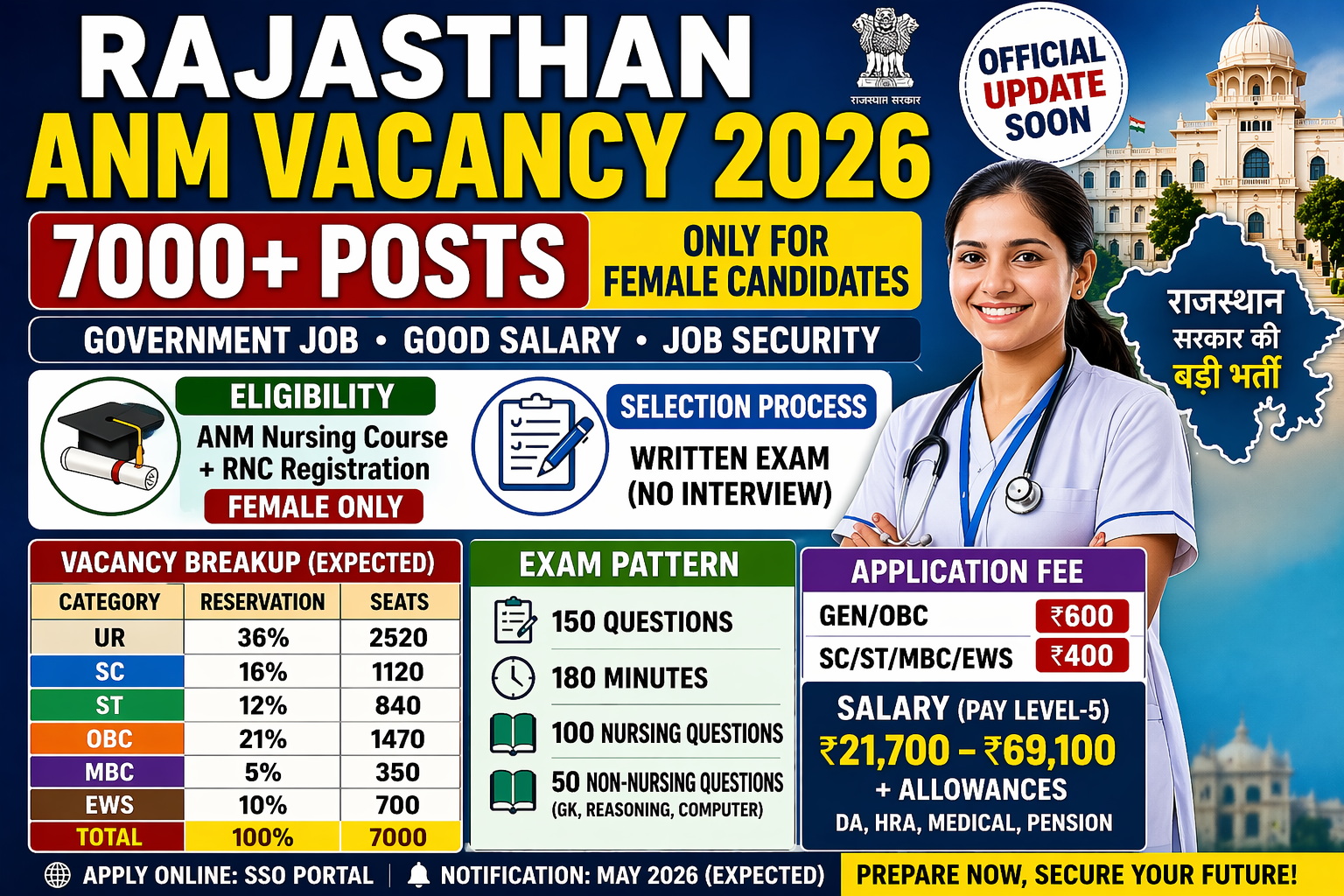 The Rajasthan Nursing Officer Upcoming Vacancy 2026 is a massive opportunity for nursing aspirants across India. With 12000+ expected posts, a transparent written exam-based selection process, and attractive salary benefits, this recruitment is expected to witness intense competition.